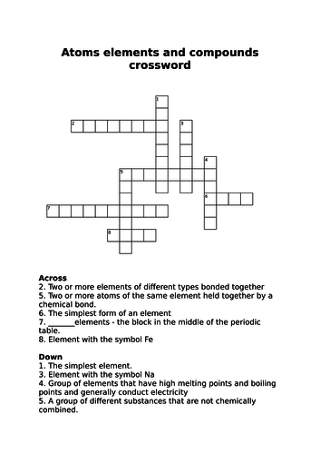 Atomic structure - Crossword from s3.studylib.net This set is often saved in the same folder as. Reinforce your knowledge of words about atoms and molecules with this crossword puzzle activity. Vocabulary words crossword chemistry worksheets classroom student science activities puzzles. How to create crosswords puzzles. Isotope the mass of an atomn expressed in. Prior research on crossword puzzles in chemistry education. Atoms of the same element with different numbers of neutrons. A term used to describe molecules and polyatomic ions that have one regular periodic variations of properties of elements with atomic number (and position in the periodic table).